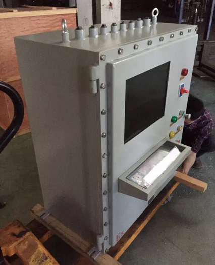 PLC帶觸摸屏做成防爆控制柜或者防爆控制箱外形可以根據(jù)用戶的不同需求而定,一般為立式、琴臺式,壁式等等,內(nèi)置PLC與觸摸屏連接,可以通過防爆鍵盤,防爆鼠標進行控制即可,觸摸屏密封保護為5mm厚度的鋼化玻璃進行防爆密封處理。